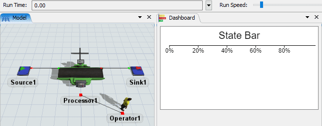 de vérifier que l'opérateur transporte bien les produits de la machine vers la sortie.À ce stade, voici à quoi ressemble votre simulation: