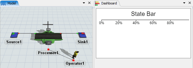 Dans ce modèle, un opérateur usine des pièces sur une machine et les transporte vers la sortie. À la fin du tutoriel, voici à quoi ressemblera votre simulation: